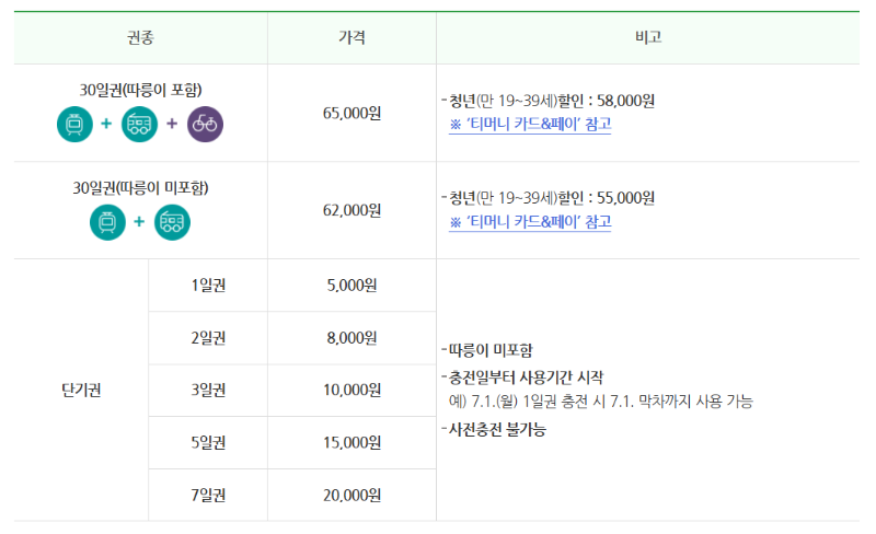 특히 따릉이 이용 여부에 따라 가격이 차등 적용되므로 이를 고려한 선택이 필요합니다.