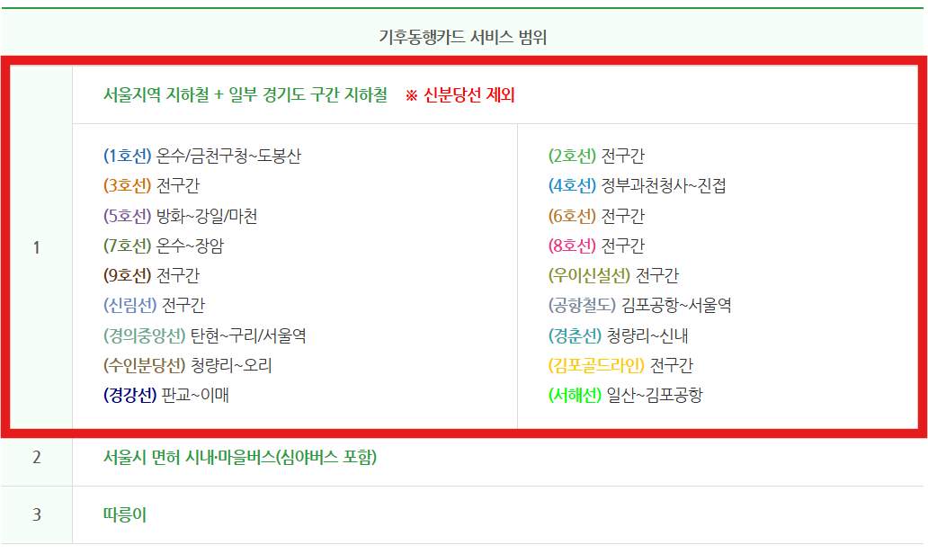 기후동행카드가 모든 교통수단에 적용되는 것은 아닙니다.