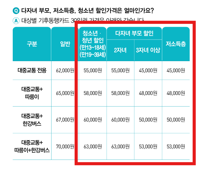 기후동행카드는 사용자의 교통패턴에 맞춰 다양한 권종을 제공합니다.