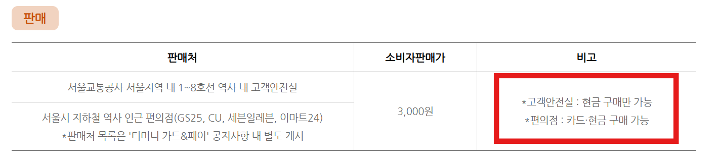 서울교통공사 1~8호선 고객안전실 또는 9호선·우이신설선·신림선 역사 인근 편의점 방문 후 구매가능하며