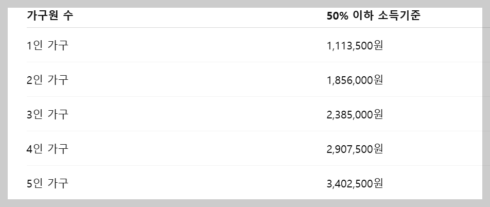 ※ 기준 중위소득 50% 금액(2025년 기준, 세전 월소득 기준)