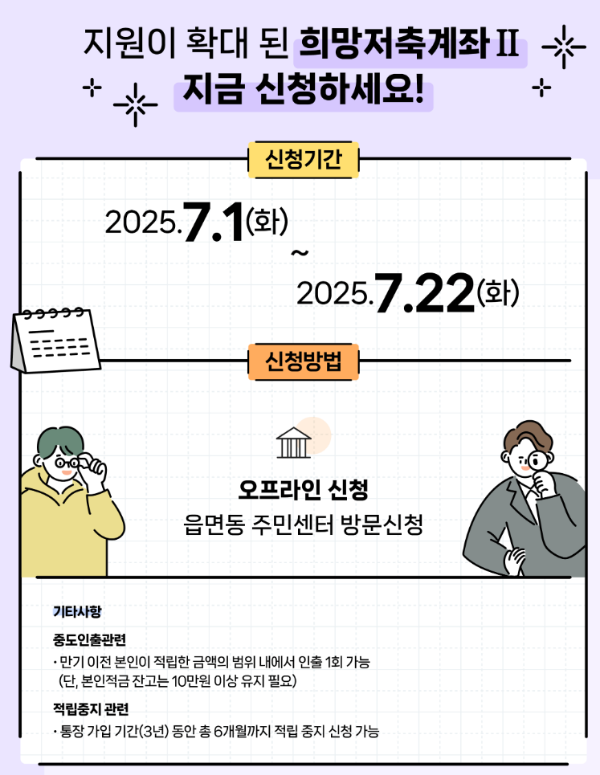 2025년 희망저축계좌Ⅱ는 연 2회 모집을 진행합니다.