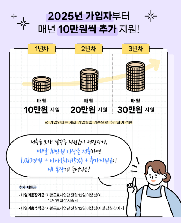 또한 2025년 신규 가입자부터는 근로소득장려금 차등 지원이 적용된다고 합니다.