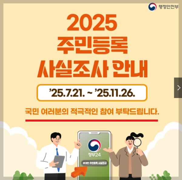 2025년 여름, 행정안전부는 전국민을 대상으로 주민등록 사실조사를 실시합니다.