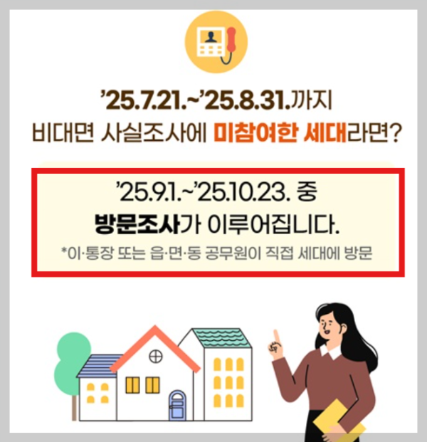 2025년 9월 1일부터 10월 23일까지, 해당 세대에는 각 지역의 이·통장 또는 읍·면·동 공무원이