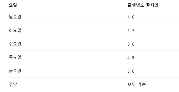 신청 첫 주에는 출생연도 끝자리 기준 요일제가 적용되어,