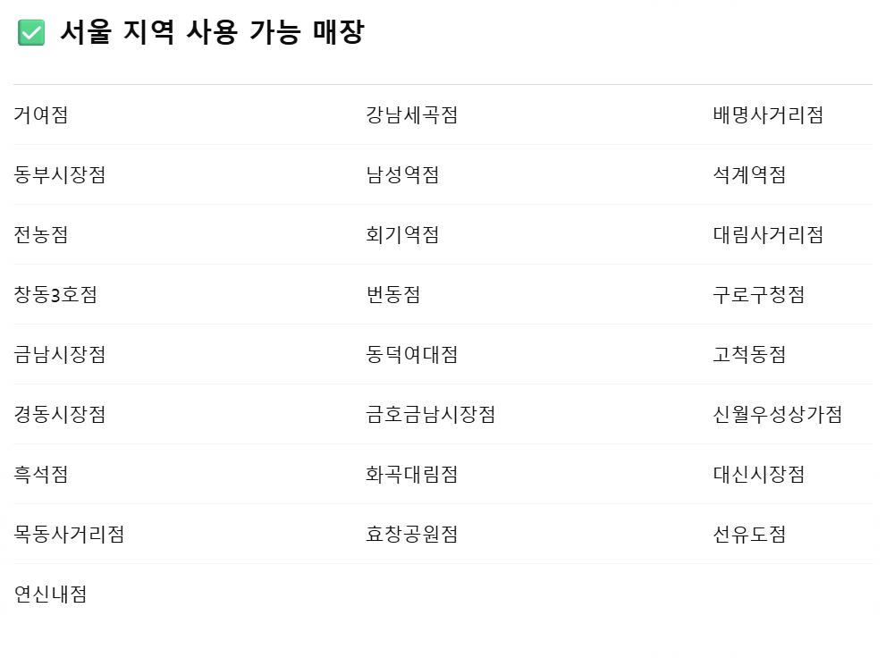 특히 서울과 경기 지역의 일부 가맹점에서는 사용이 가능하므로,