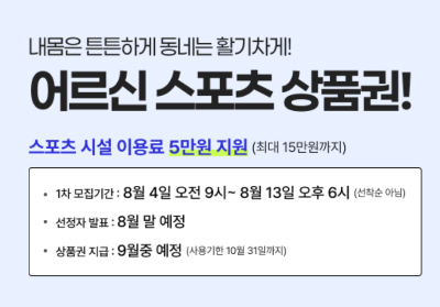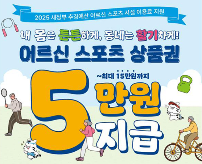최대 15만 원 상당의 ‘어르신 스포츠 상품권’을 제공하는 정책을 추진 중입니다.