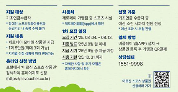 ‘어르신 스포츠 상품권’은 기초연금을 받고 있는 만 65세 이상 어르신에게