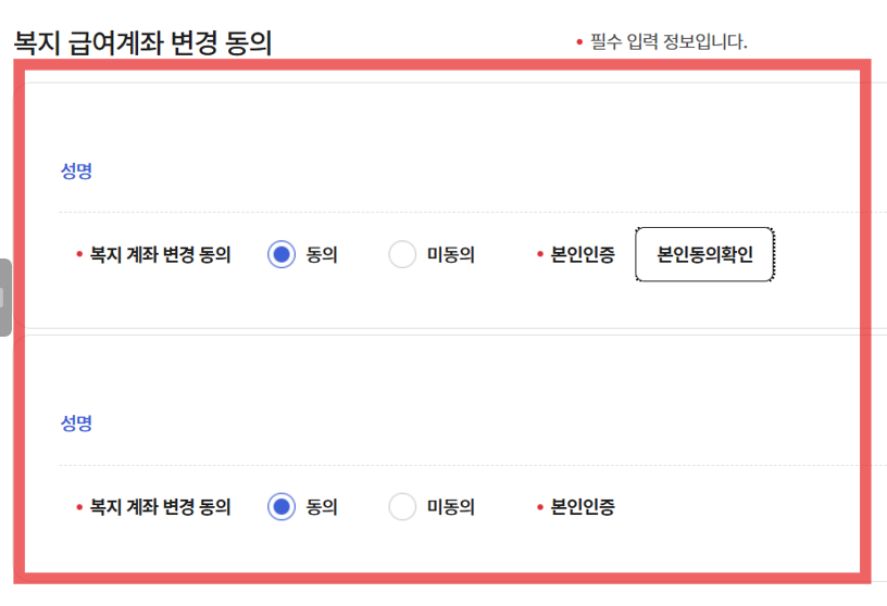복지급여계좌변경의 신청 조건은 기본적으로 급여대상자 본인이 변경을 원할 경우에 가능합니다.